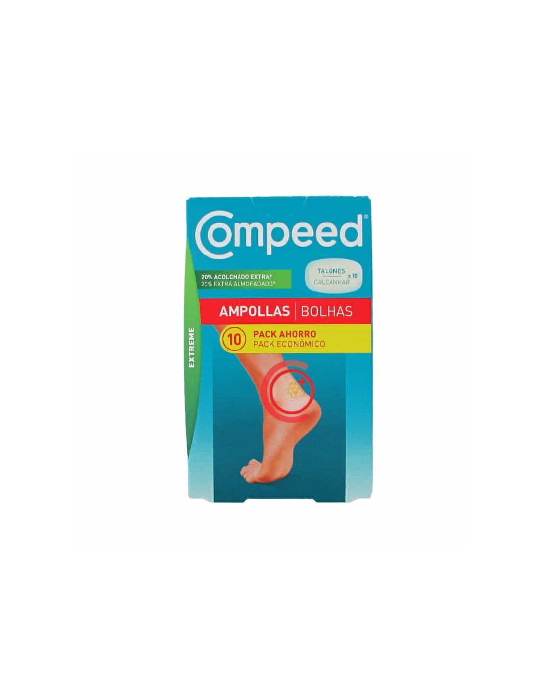 La tecnología hidrocoloide de Compeed consta de un gel que alivia el dolor al instante y proporciona una rápida curación. Posee una estructura en nido de abeja que proporciona un 20% más de acolchado en comparación con otras compeed ampollas. Su acolchado reforzado alivia el dolor al instante, protege y amortigua el roce. Son ultra adhesivas y flexibles. por lo que no se despegan y esto las permite adaptarse al movimiento y que premancezca en su sitio durante más tiempo. Son impermeables y transpitrables, absorbe el exceso de fluido, manteniendo la húmedad de la piel y protegiendola de germenes, lo que favorace su correcta cicatrización.