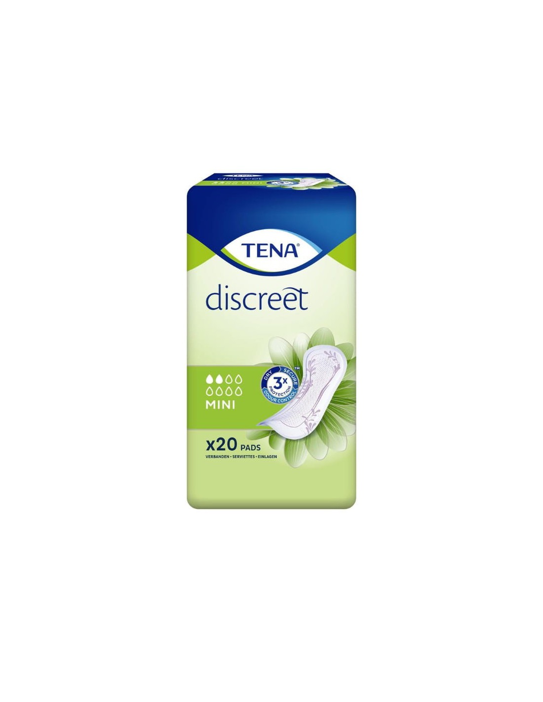 TENA Lady Discreet Mini 20 compresas: te ofrecen protección frente a pérdidas de orina leves. Tecnología de compresión microPROTEX? Ofrece TRIPLE PROTECCIÓN ante los escapes, el olor y la humedad. Tiene el mismo tamaño que una compresa pequeña para la menstruación, pero está diseñada para la incontinencia urinaria leve. Te ofrece absorción donde más importa para garantizarte la seguridad y la discreción que necesitas. Dermatológicamente testado.