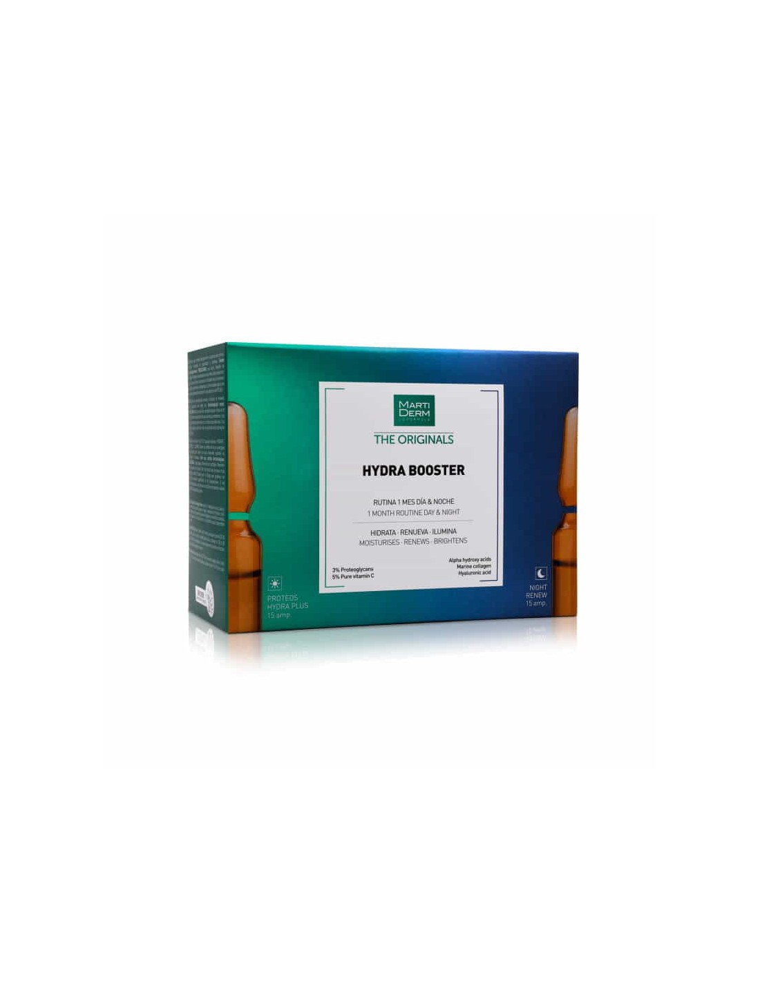 Hydra Booster es el nuevo tratamiento de choque para pieles secas que necesitan una hidratación intensiva. Combina 4 productos: las ampollas Proteos Hydra Plus (15 amp.), las ampollas Night Renew (15 amp.), el Exfoliante Facial (15 ml) y la mascarilla Hidro Mask (15 ml). Proteos Hydra Plus hidrata, es antioxidante, reafirma y aporta luminosidad. Night Renew renueva, reafirma e hidrata la piel. El exfoliante limpia en profundidad para la eliminación de impurezas y renovación de la piel, mientras que la mascarilla reafirma, dejando la piel más suave, firme e hidratada.
