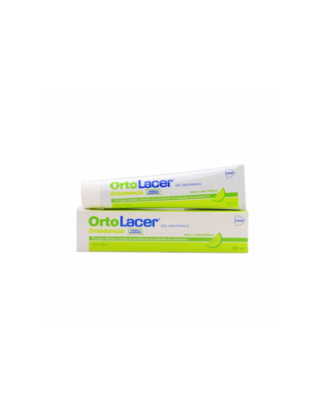 LACER ORTOLACER GEL DENTIFRICO específico para la higiene diaria de portadores de ortodoncia. Refuerza el esmalte y previene la caries. No irrita las encías ni deja color en el esmalte del diente.