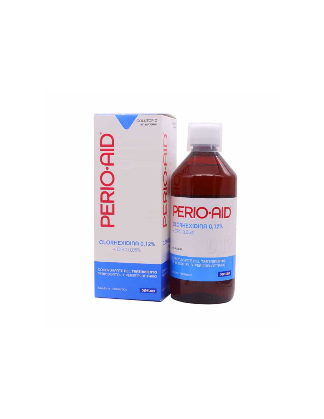 Perio-Aid colutorio sin alcohol 500 ml está compuesto por Digluconato de Clorhexidina 0,12 % y Cloruro de Cetilpiridinio 0,05 %.
