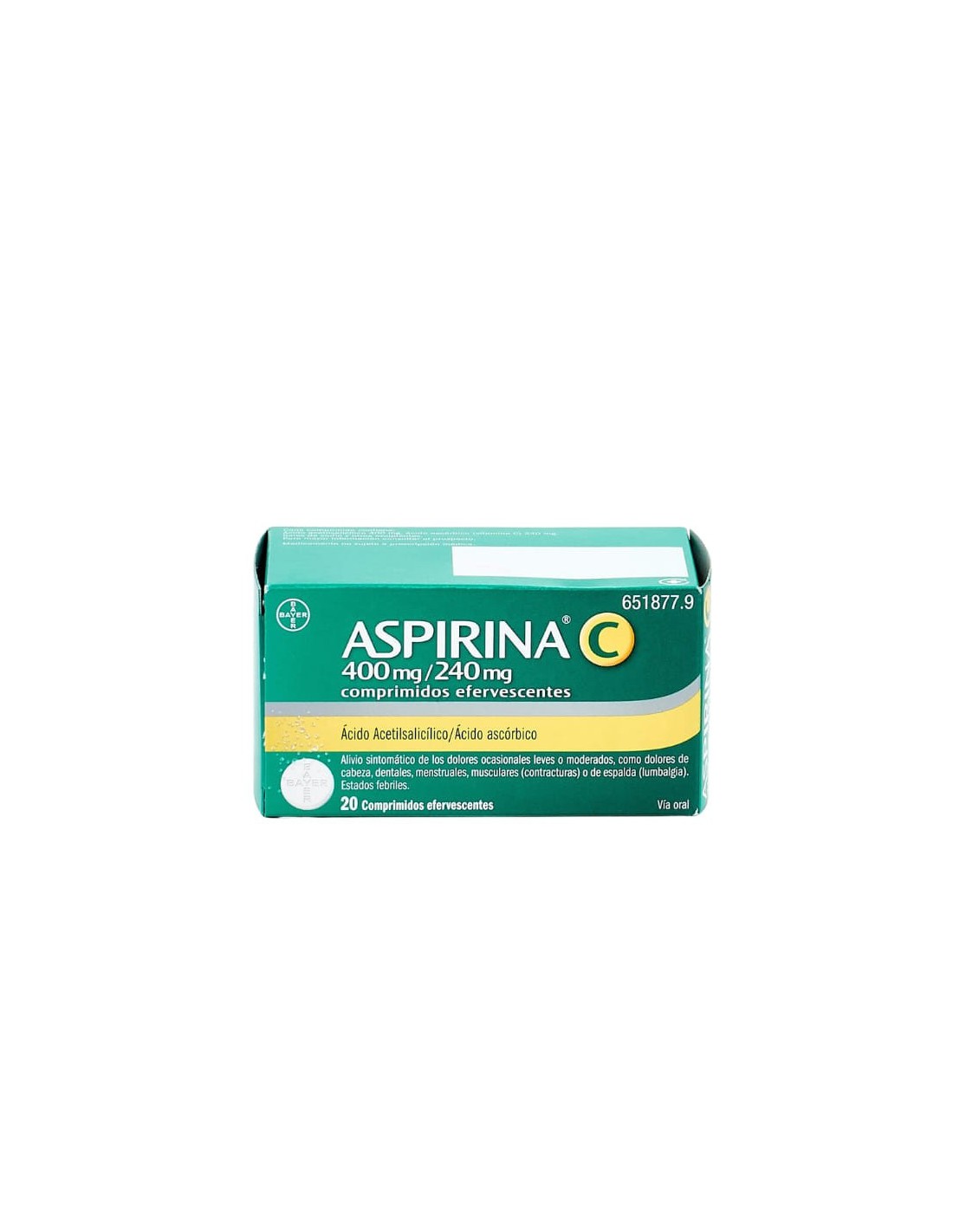 ASPIRINA C 400 MG/240 MG, Está indicado en el alivio sintomático de los dolores ocasionales leves o moderados, como dolores de cabeza, dentales, menstruales, musculares (contracturas) o de espalda (lumbalgia). Estados febriles.